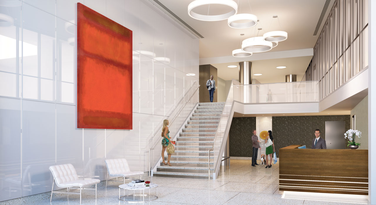 Step into... The Giovanni. Marked by a unique sense of style, The Giovanni makes a dramatic first impression. Our lobby is light and airy, featuring modern, distinctive finishes and a 24-hour concierge. Follow the lobby stairs to our lifestyle level, and enhance your day-to-day living experience with our fabulous amenities including a residents' lounge, media room, fitness center, yoga room, game room, children’s playroom and landscaped deck.